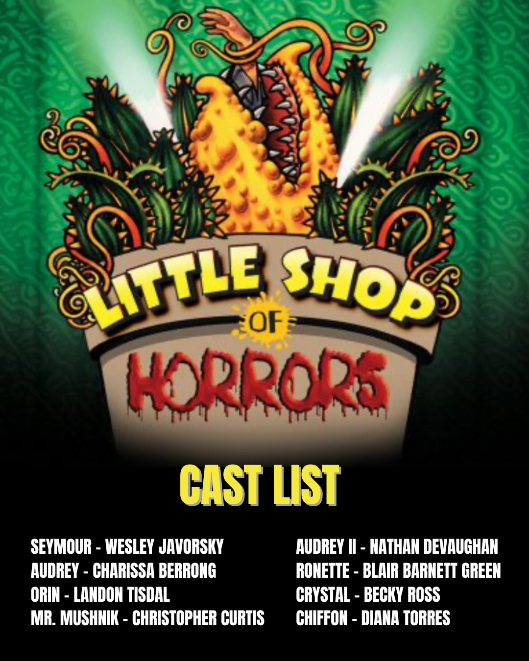IT’S ALIVE… THE CAST HAS BEEN ANNOUNCED! Southwest Playhouse is THRILLED to officially announce the cast of our upcoming production of LITTLE SHOP OF HORRORS.